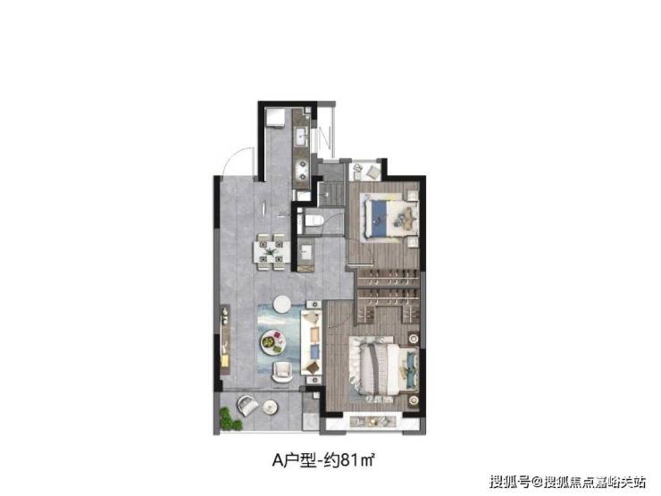 【建面约81㎡ 2房2厅1卫】