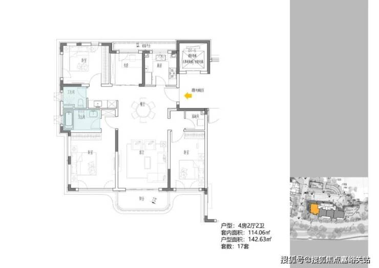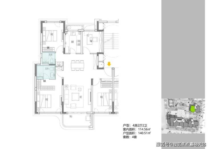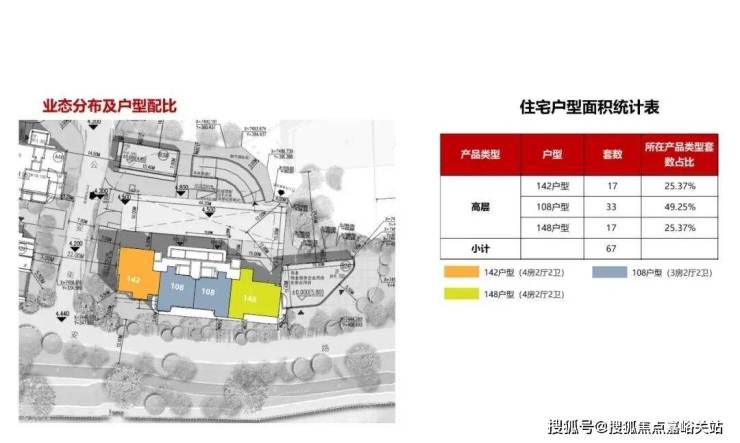 B地块容积率2.94,只有一栋小高层,共67套房源,产品建面约108-148㎡。