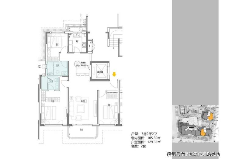 二期3#地块:规划2栋23层高层住宅以及保障房,产品包括建筑面积约105-140㎡3房、约65-90㎡1-2房。