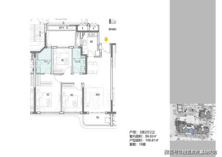 C地块容积率2.33,由一栋18层的小高层和两栋6层的花园洋房组成,共92套房源,产品建面约108-196㎡。