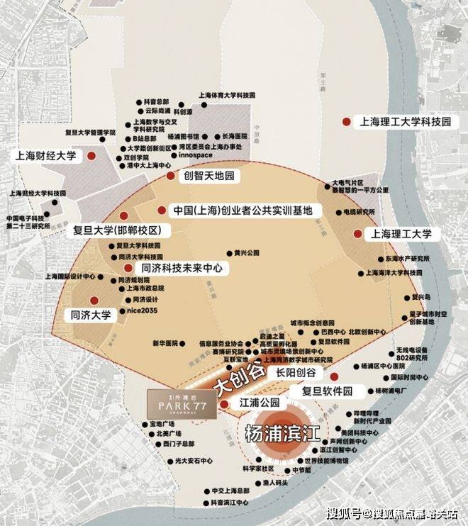 同时,保利外滩启PARK77 独据杨浦滨江科创扇面启点(江浦公园站),5km创新半径内,无论高校资源富集度、产业创新浓度,还是人才密度皆为上海更高:百年复旦、巍峨同济、上海理工3大顶尖高校,在此如群星汇聚;7家国家大学科技园、100余所科研机构、1200多家国家高新技术企业,在此星罗棋布,数量位居上海全市前列;国家级创新引擎——长阳创谷,集聚小红书、得物、福特汽车、同济数字研究院等巨头,百度创新中心、埃森哲AI实验室、赢彻科技等人工智能企业;大连路总部研发集聚区,吸引了西门子、大陆集团、李尔亚太等近1700家企业入驻。