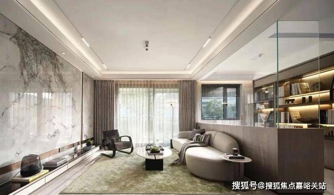 电视背景墙选用带有东方意蕴的万里河山石材,颜值超高!保利·海上瑧悦售楼处电话➡☎:400 - 8824 - 258【24小时预约快线】