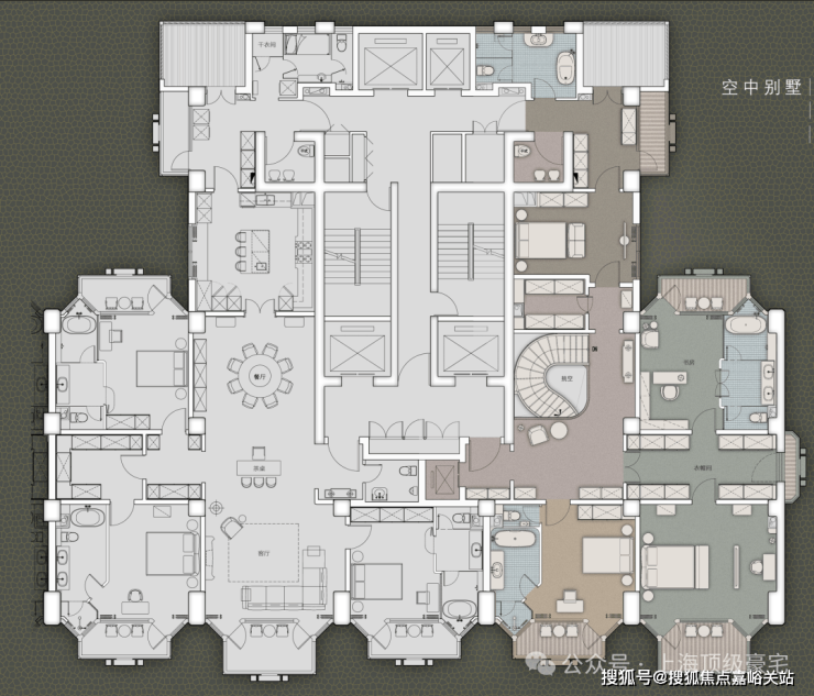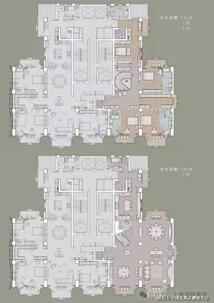 住宅部分全部大平层(复式)设计,单套面积约370-1500㎡,全部精装交付。