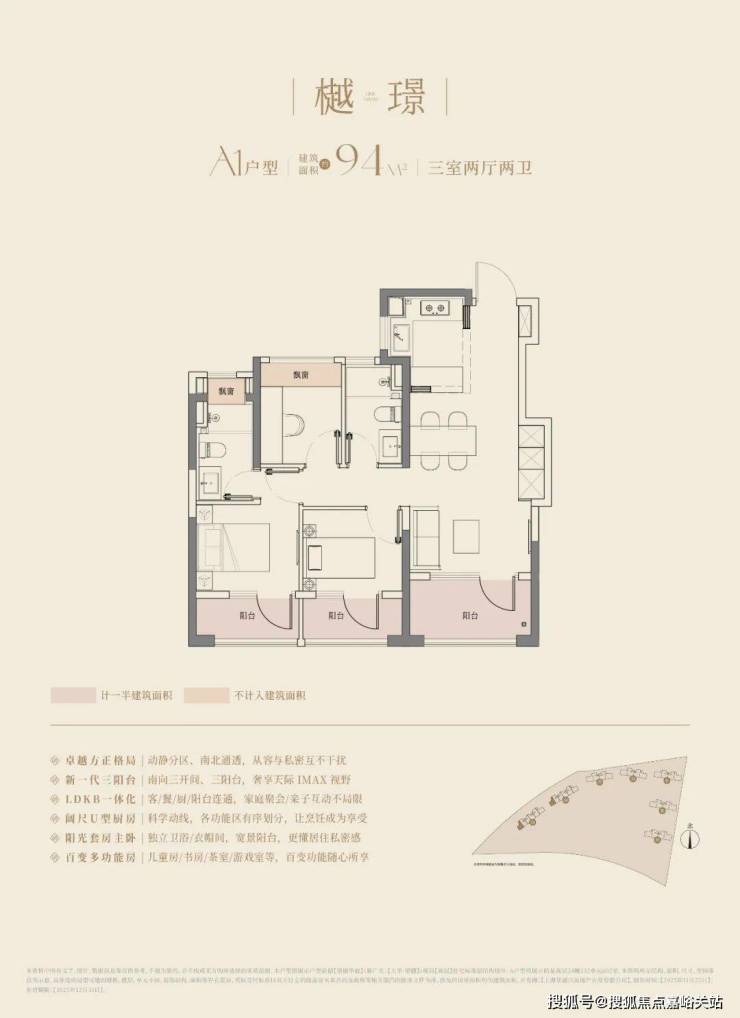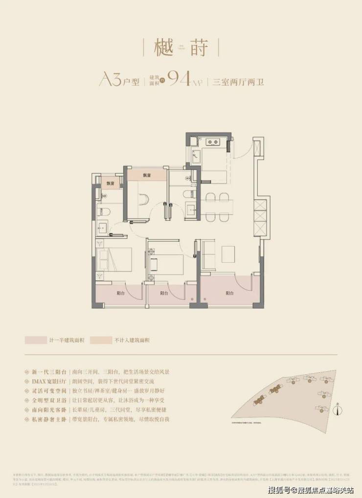 建面约94m3房2厅2卫