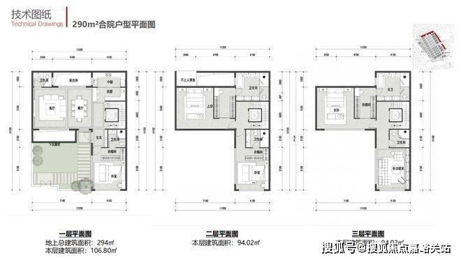 21套290平L型合院;