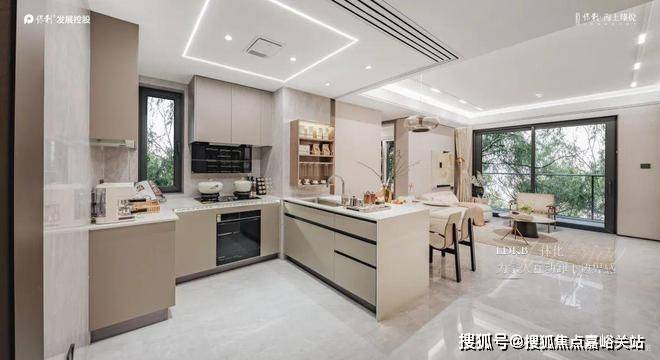 问题。厨房、餐厅、客厅三大空间联通,不仅通透感十足,还构建了一个利用率超高的家庭核心区,在这样高度开放的空间里,即使互不交流,也能保持交流和关注!