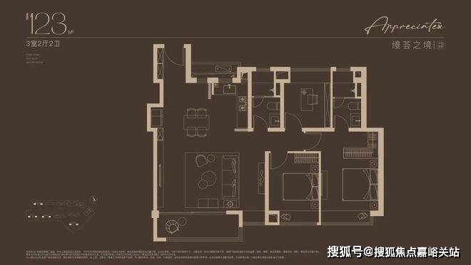 建面约 123㎡的三房,主卧带独立卫浴 + 衣帽间,为您带来酒店式套房体验;