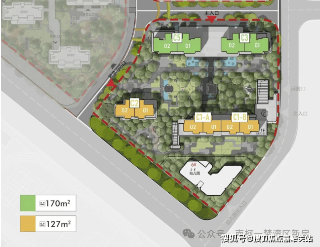 与一期相比,二期的户均园林面积是前者的1.7倍,可谓推窗见绿,下楼入林,享受CBD里独一份的“奢侈”。主力户型为 建面约127㎡和170㎡ ,清一色16-17层小高层,T2南向板楼。户型设计上,既延续了之前的爆款基因,又实现了 面积控制与产品力的双重进阶
