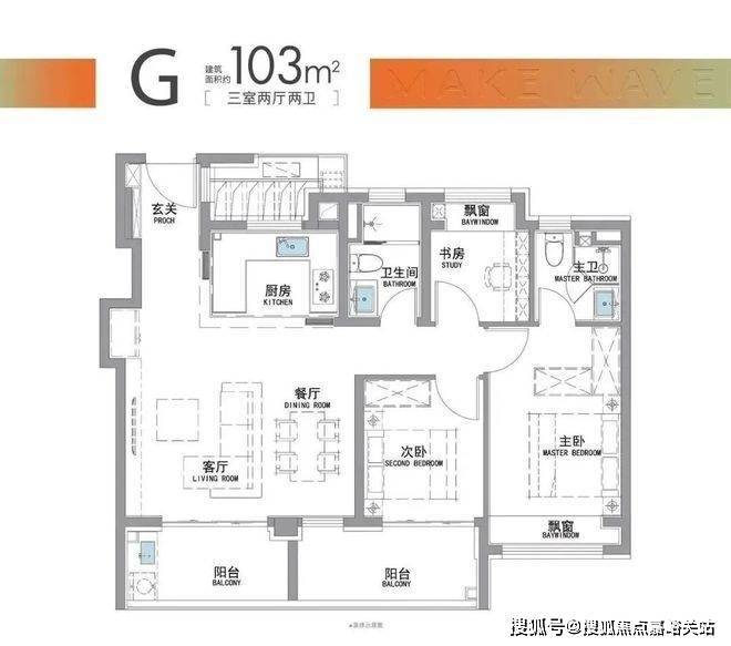 值得一提的是,该户型做到了“南向双阳台+南北双飘窗”的设计,在实用性上超越了市场上许多同面积段的产品。
