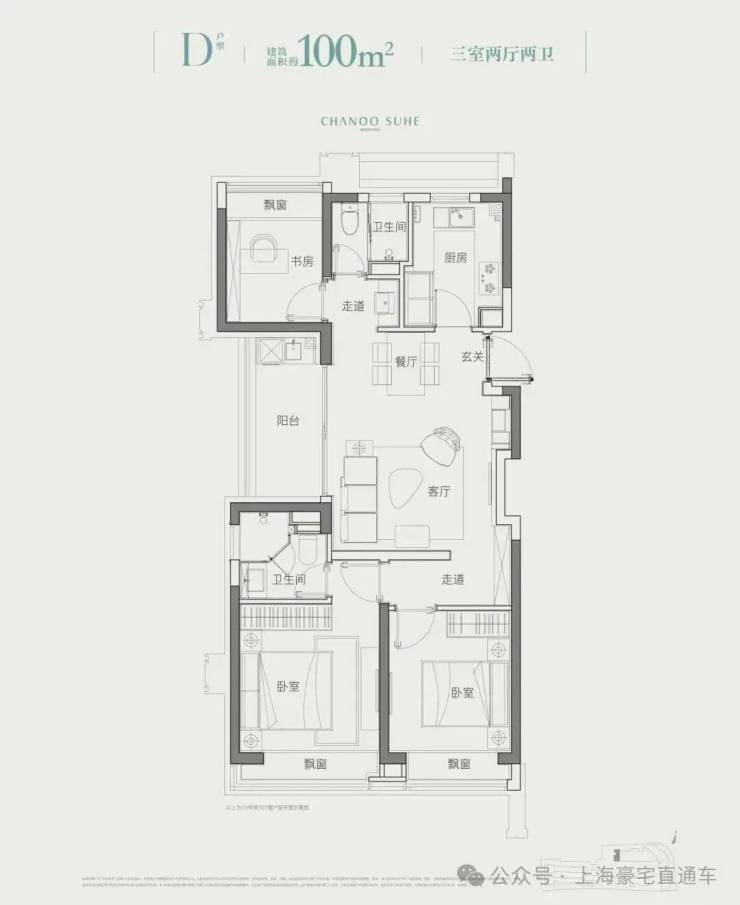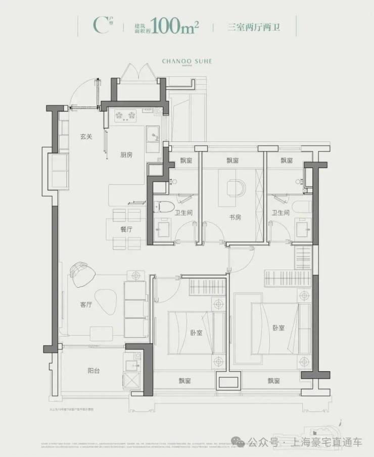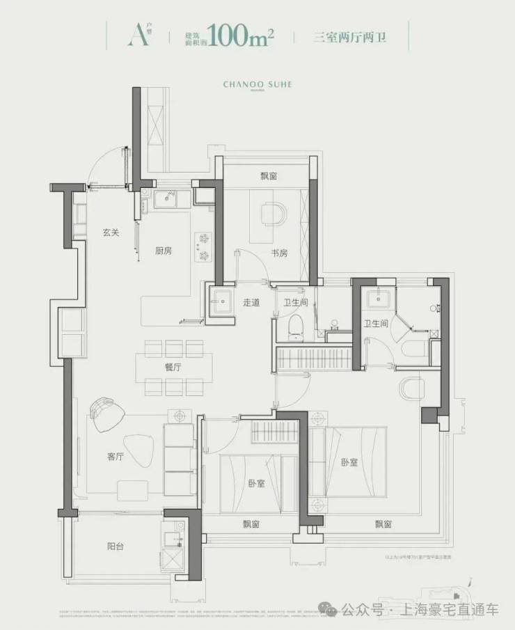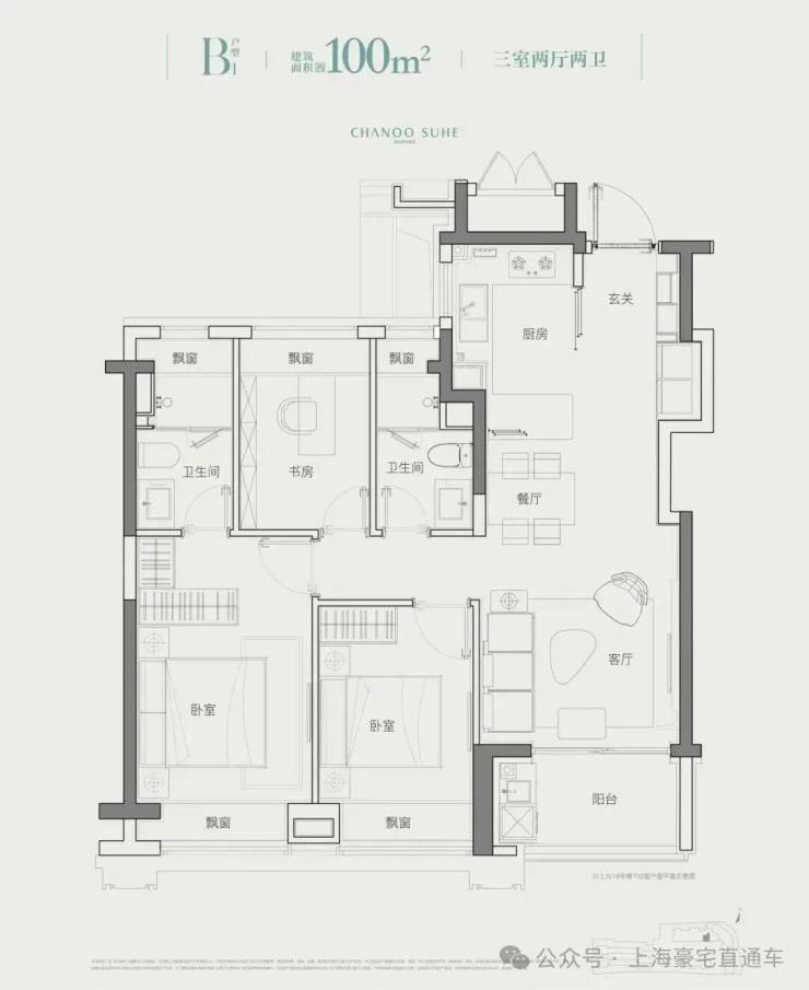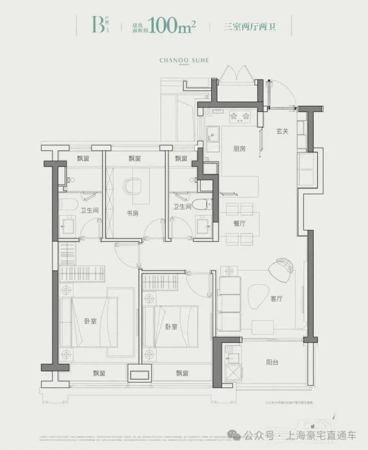 项目高层产品均为100㎡左右3房户型,一梯6户: