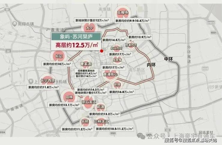 上海象屿·苏河琹庐位于内环静安区,直线约300米可达中兴公园和交通公园,距静安大悦城、万象天地、宝格丽酒店、苏河湾世界级滨水商务区等配套直线约1KM,距人民广场直线约1.5KM,周边聚集了超21家跨国公司地区总部,约3KM国际生活圈,涵盖陆家嘴、人民广场、静安寺、南京路、外滩、新天地等繁华CBD都市生活圈。