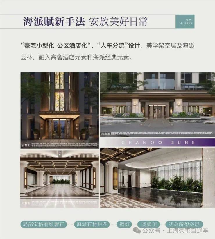 象屿·苏河琹庐由象屿地产集团打造,项目由1幢26层的高层住宅(5-25层为商品房,共132套)和16幢2-3层的风貌别墅组成。容积率2.67,绿化率35%,车位配比约1:1.2,实行人车分流。项目注重海派文化的传承与创新。高层立面以中国传统“多宝格”为灵感,别墅则提取了海派经典元素并进行现代演绎。小区内还规划了海派风华园林以及包含艺术沙龙、共享办公、亲子互动、健身社交、文化展览等功能的 “海派GLOCAL生活馆” 为居者提供全龄段生活需求。
