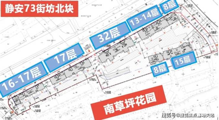 静安73街坊项目共分为南北两个地块,中间被现有的住宅隔开。