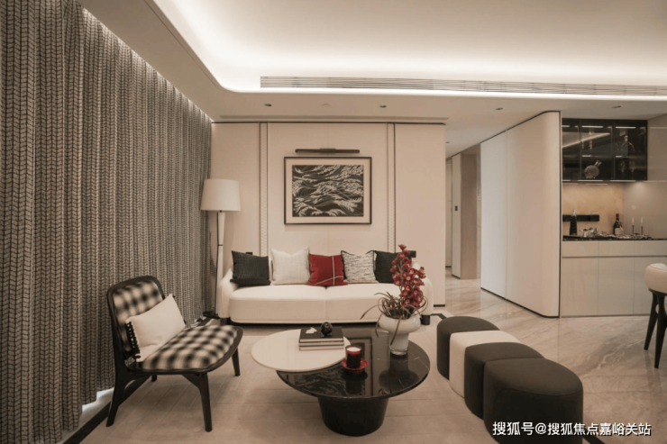 客厅也采用了当下比较时兴的 横厅设计,面宽来到了约5.4米。要知道,很多内环内120㎡的豪宅,面宽可能还在4.8米左右。