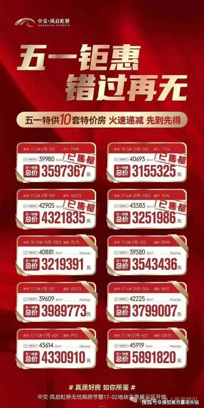 中交凤启虹桥售楼处电话☎:400-856-9058☑️☑️目前项 目三批次全系产品,刚刚推出了建面约74-144㎡2/3/4房,总价仅约296万起,正火爆热销中!具体楼栋产品落位如下:中交凤启虹桥售楼处电话☎:400-856-9058☑️☑️