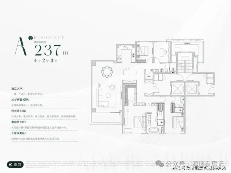 7#总高18F,首层局部架空,户型为建面约195-249㎡4房,两梯两户,层高约3.15米.