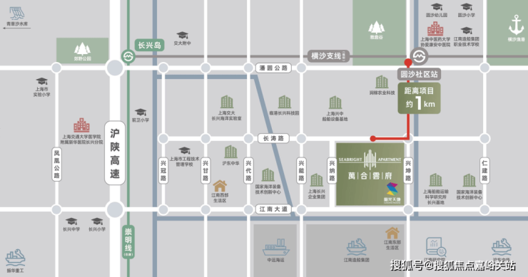 「高速交通」:由长江隧道约7.8公里即可到达G20、G40、上海绕城、五洲大道等,距金桥约25公里、速达陆家嘴及各大交通枢纽。