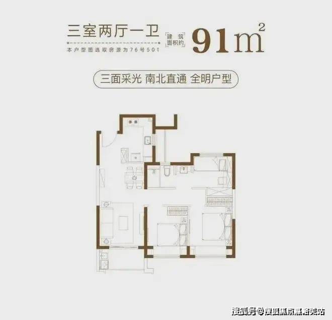 建筑面积约84-101㎡瞰景高层,方正格局,正向朝南,采光性和通风性都非常优秀;动静分离、干湿分离更是不在话下;而且推窗便能看见高尔夫绿洲,视野极为优越!