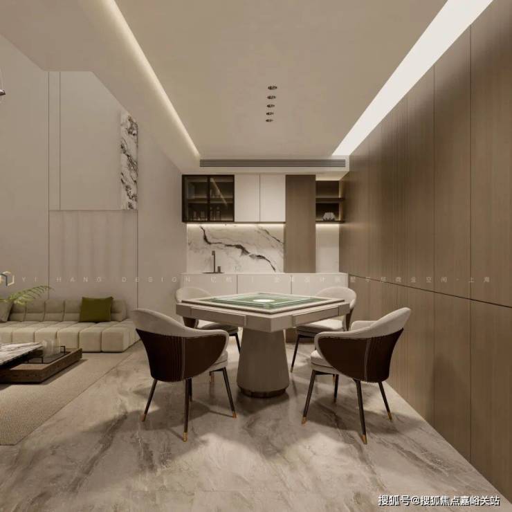 麻将室: 紧邻客餐厅,简约麻将桌与木饰面墙面相得益彰。这里是家人娱乐、朋友聚会的欢乐角落,欢声笑语随时发生。