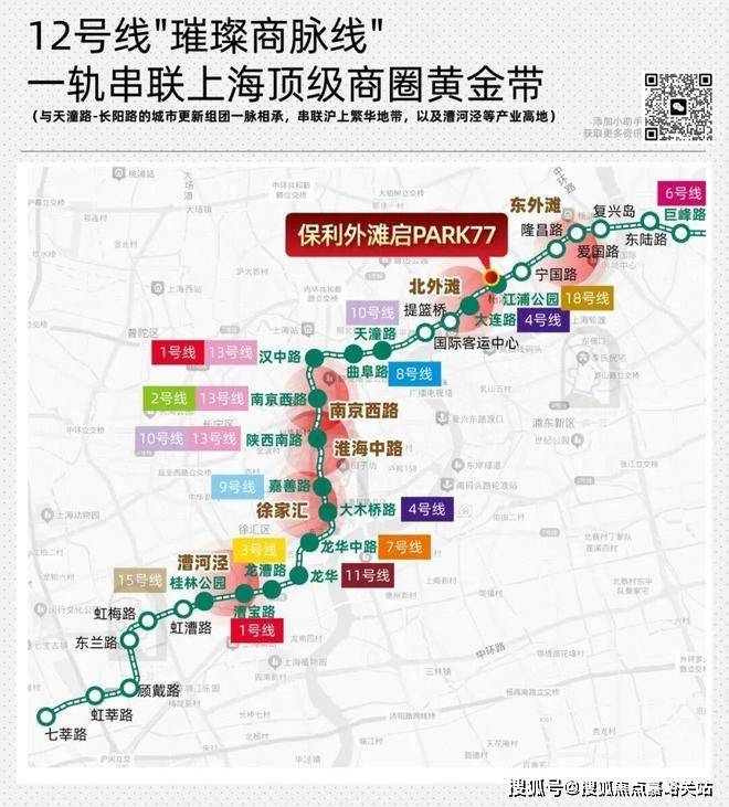 从项目出发到徐汇滨江的11站路, 足足有11站是换乘站点,无论是徐汇滨江的艺术气息、衡复风貌区的梧桐光影、南京西路的高端商业、苏河湾的新旧融合、北外滩的邮轮码头、杨浦滨江的工业风步道,都能通过12号线直接衔接。