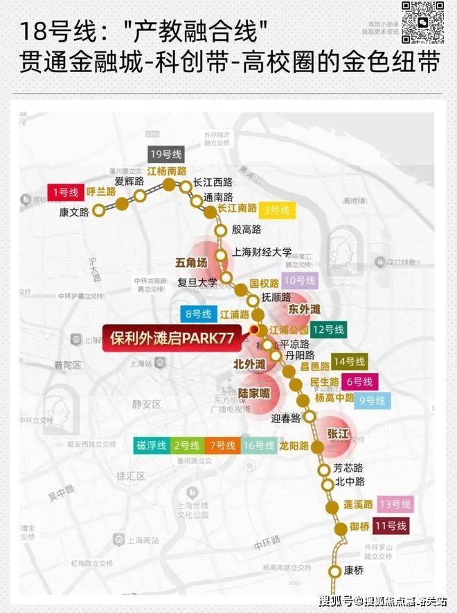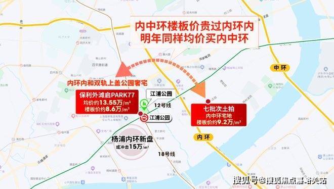 杨浦内环12/18号线江浦公园站双轨上盖,保利外滩启PARK77火热在售中!总价1136万起!