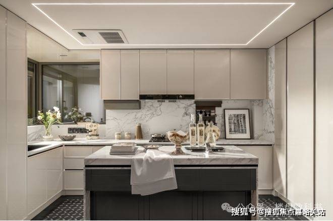 超大尺度的中西岛台 ,既符合中式烹饪的实用逻辑(预留足够操作台面),又能承载西式社交(朋友小聚时在岛台品酒聊天),让厨房从“单一做饭空间”变成“生活场景发生器”。