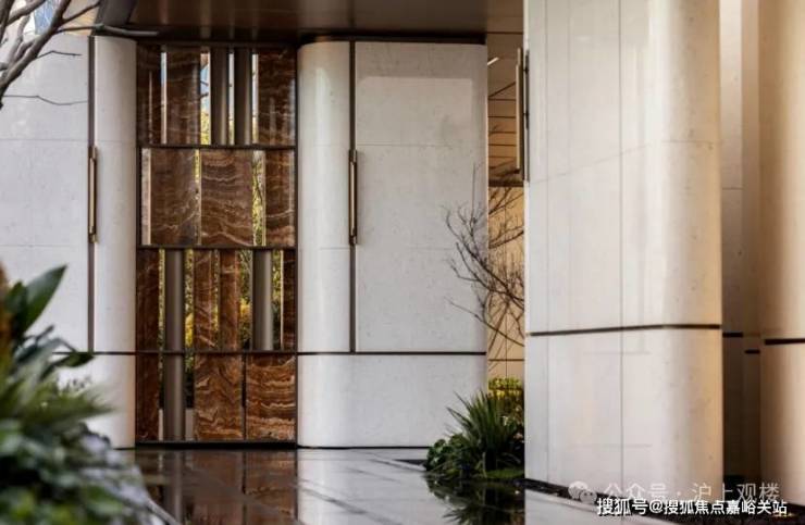 不仅是金钱上的奢侈,更是时间广度的奢侈。 比如,整个下沉式庭院材料选用 土耳其进口老虎玉 , 由匠人耗时60天手工打磨定制 ,可见海上·清和玺对业主归家仪式感设计的用心与苛求。海派光厅之外的归家迎宾树木更是由设计师 辗转多个城市才寻到的、树龄超60年的福木“紫薇” 。