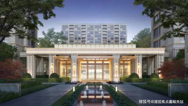入口中轴对称式的前厅水景 , 两侧阵列由榉树围合组成,不仅拥有“门前中举”的美好寓意,也让入口的仪式感拉满,与灵动的喷泉水景交相辉映,形成具有东方礼序的归家体验。