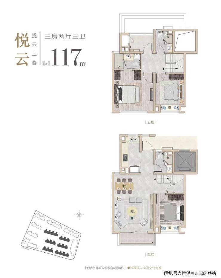 产品方面,项目以现代中式风格为基底,凝萃平坡结合手法,融入顶部挑檐及坡顶设计,全心呈现建面约117-129㎡ 中式叠墅、建面约 85-95㎡ 逸境洋房洞见大匠修为。