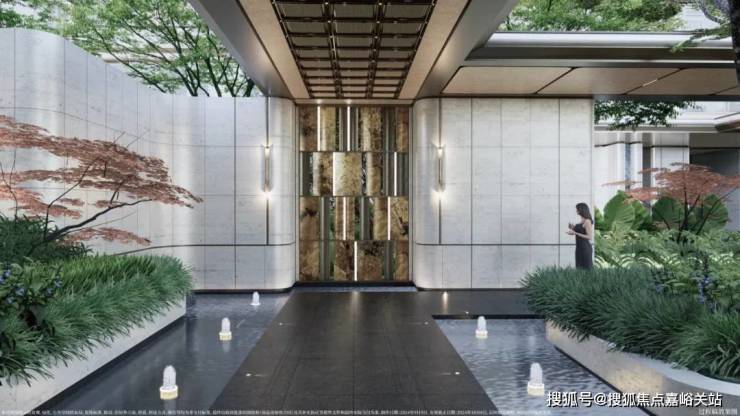 基座更是采用 大面积石材搭配 艺术玻璃及 古铜色金属窗框,辅以奢石、艺术等点缀,从上到下,处处皆是奢华质感。