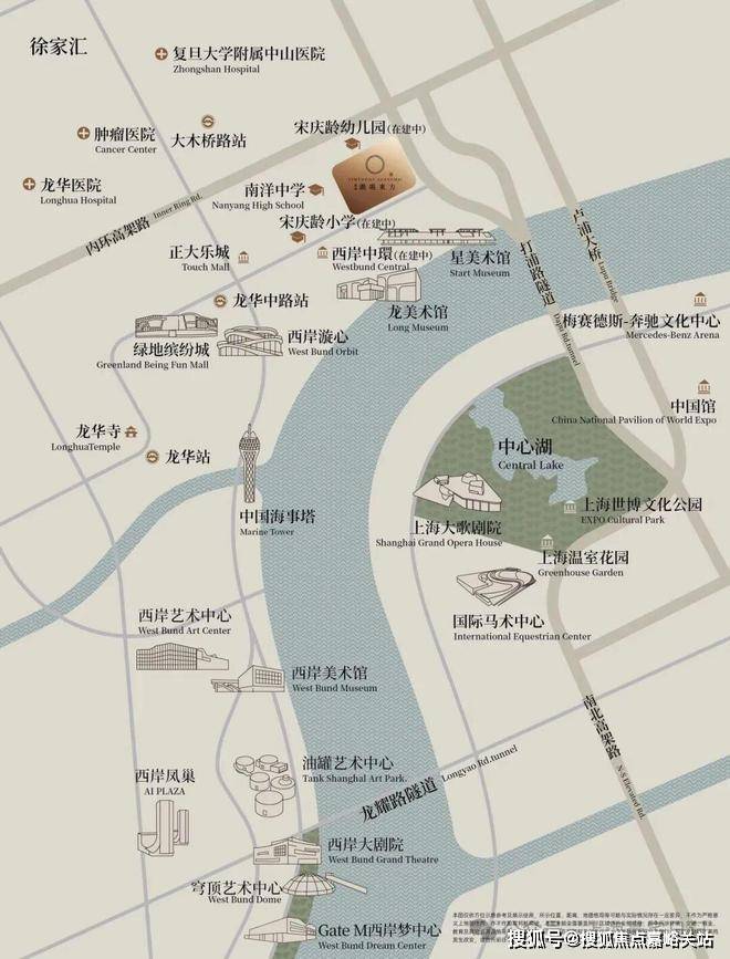 「绿城·潮鸣东方」不仅地处徐汇滨江,更位于板块内含金量最高的“黄浦江双S弯”,直线距离黄浦江仅约400米,紧邻黄浦区。