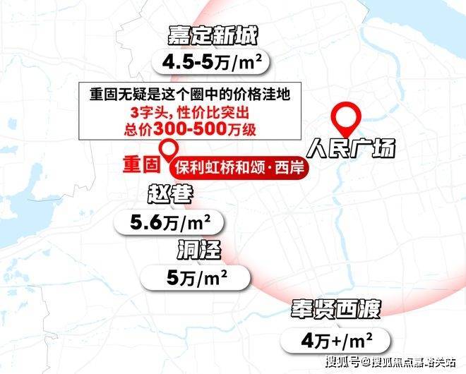 若以市中心为圆心,重固与赵巷、洞泾处于同一半径范围内,但后者房价已达5-5.6万/㎡,而重固仅3字头