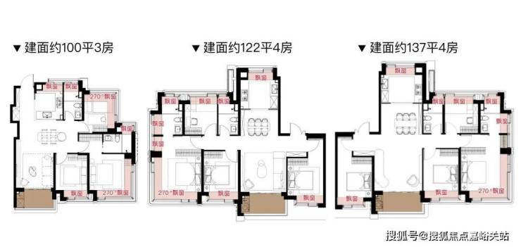 每个户型至少6个飘窗,边套更是约270°转角瞰景。