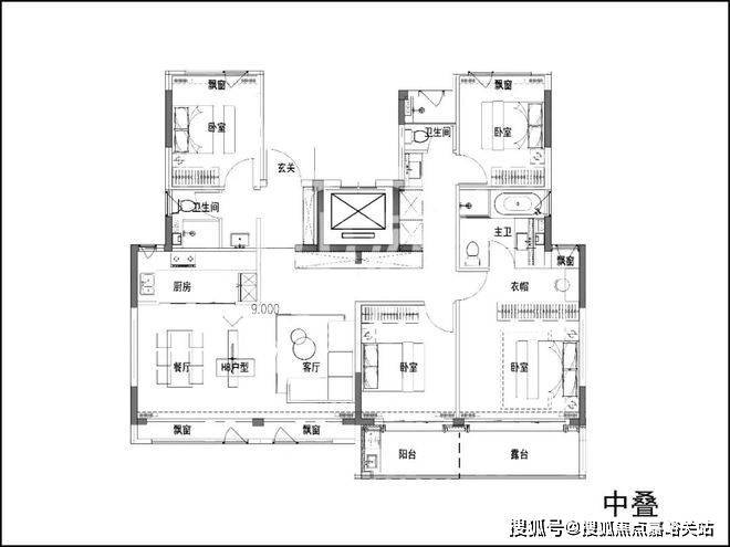 项目建面约128㎡4房户型延续了前作3S墙的设计,保证了收纳空间的丰富性。