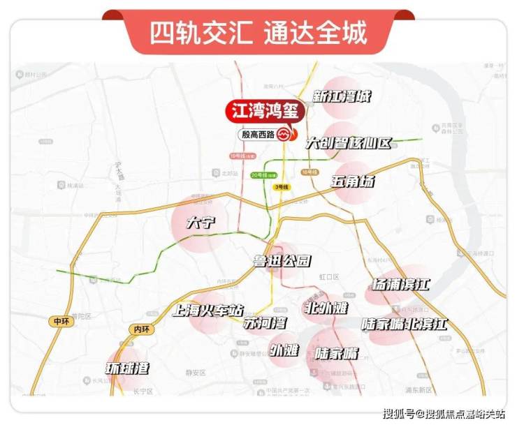 江湾鸿玺位于宝山、虹口、杨浦三区的交界处,位置相当好,将三区发展红利收入囊中!项目与五角场商业中心、大创智核心区、新江湾城相距不过3公里,一脚油门即可到达。