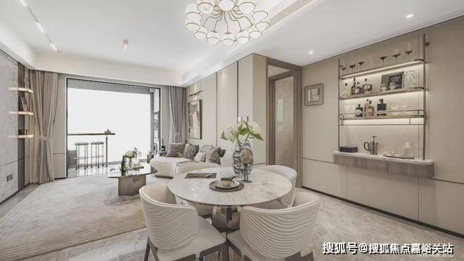 LDKG设计,让客、餐、厨、阳台四个空间打破传统布局中的“隔阂”,几个功能区独立又互通,将空间功能进一步放大。