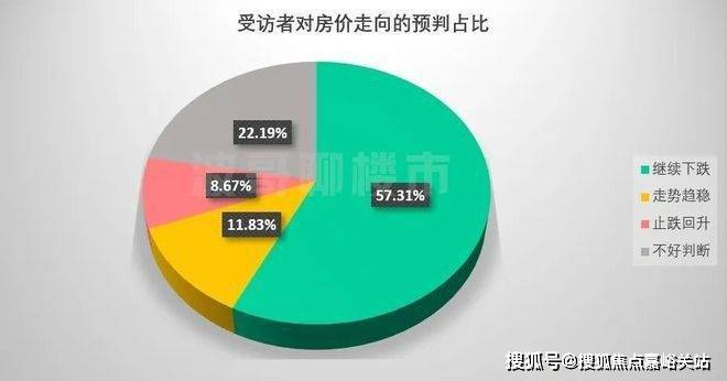 最新调查结果显示,有57.31%的人认为后市房价继续下跌,选择走势趋稳的受访者占11.83%,认为会止跌回升的人则仅有8.67%。