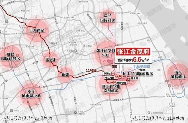 未来机场联络线快速通达浦东机场、上海东站、莘庄以及虹桥商务区,轨交21号线南北向通达张江科学城核芯、森兰国际社区等。