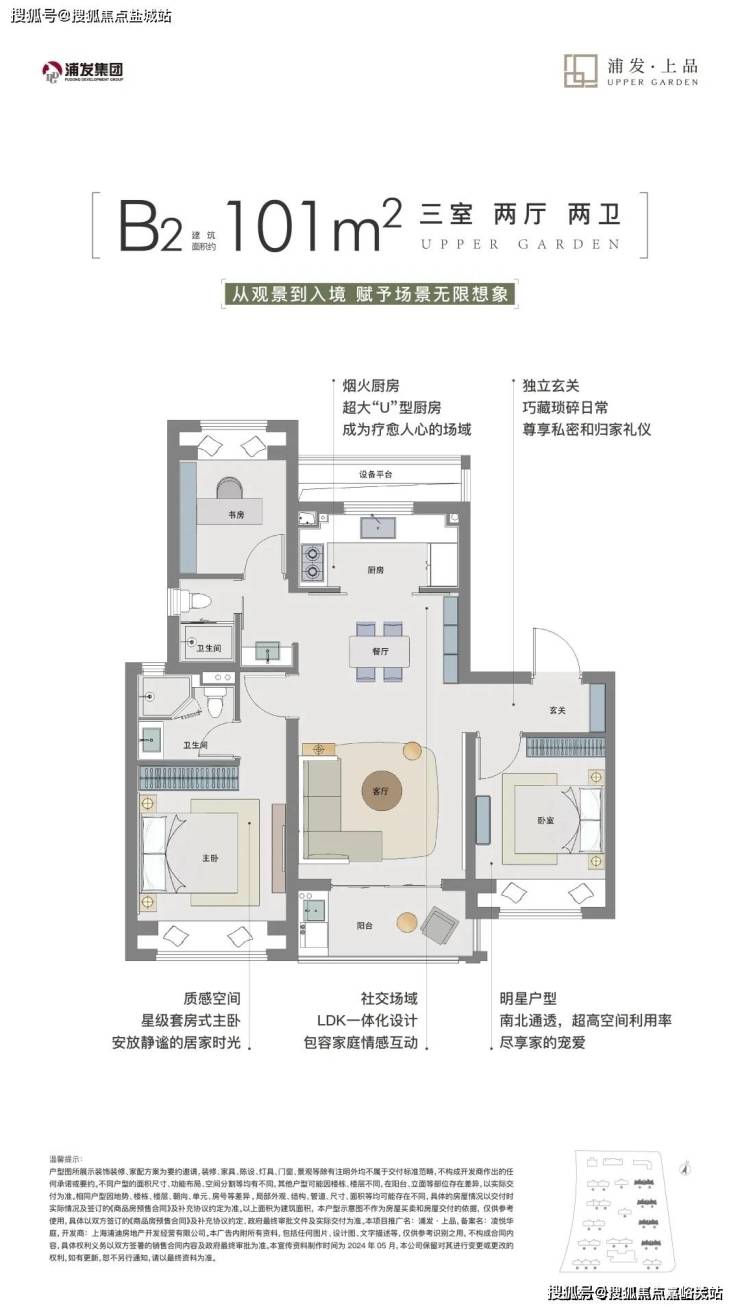 浦发上品目前在售建面约92-101-129㎡3-4房,4种全功能户型.