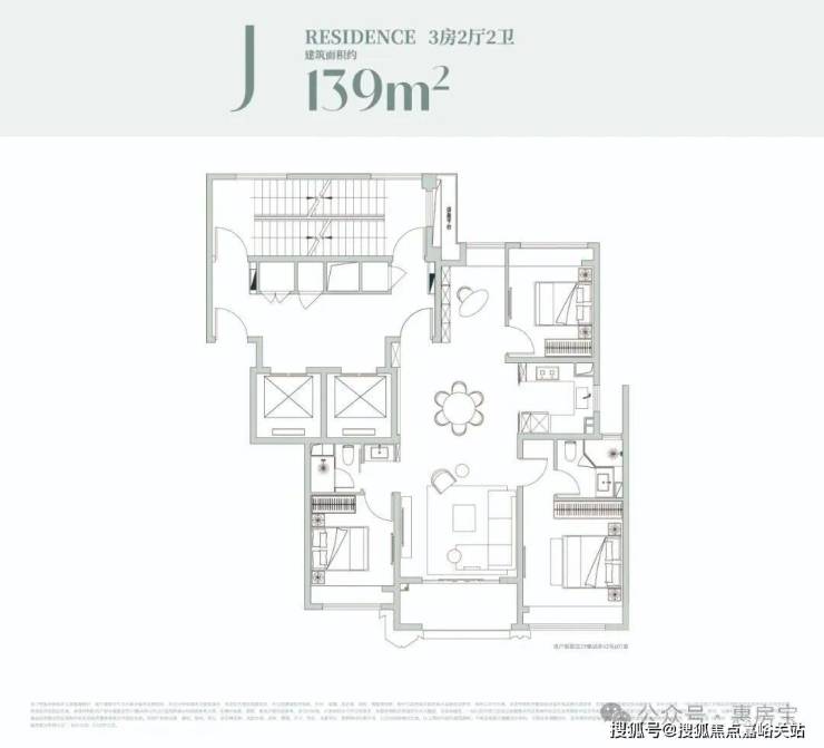建面约139㎡3房:滨江百变户型