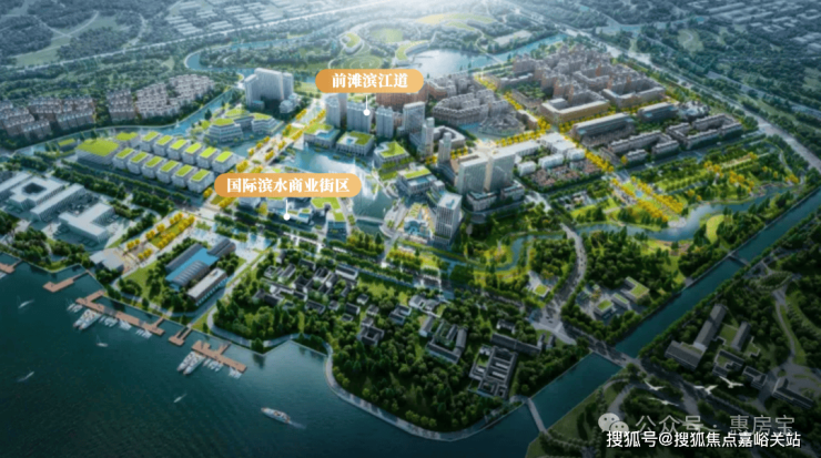 机遇4: 湾区生活体验 ——市区核心滨江罕见的湾区,通过引水入湾打造宜居社区、办公集群、公共聚场三层空间,家门口就是国际化滨水综合体;