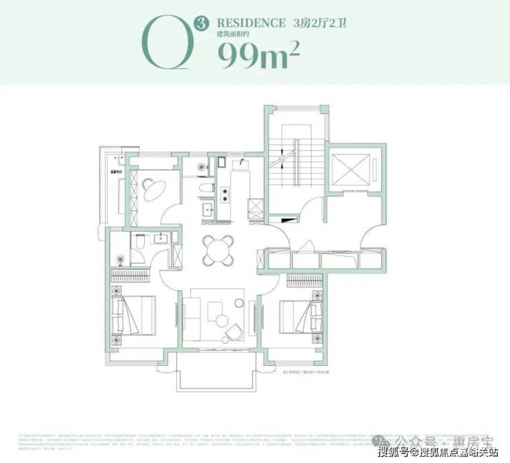 其中建面约99㎡3房在15#,双核心优势加持: