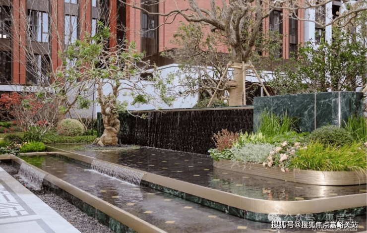 水畔之汀: 延续海派弧形收边设计与叠水效果,幻影蓝流水墙、普拉达绿景墙与奢金影灯撞色融合,中央百年桩景红果冬青与进口红枫搭配,成为点晴之笔。 前滩滨江道售楼处电话:400-8894-986VIP极速热线✅️✅️