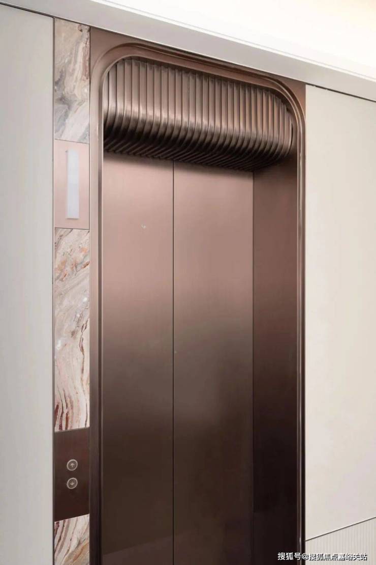 电梯厅的 GUCCI 红石材搭配暖光灯带,归家仪式感扑面而来;