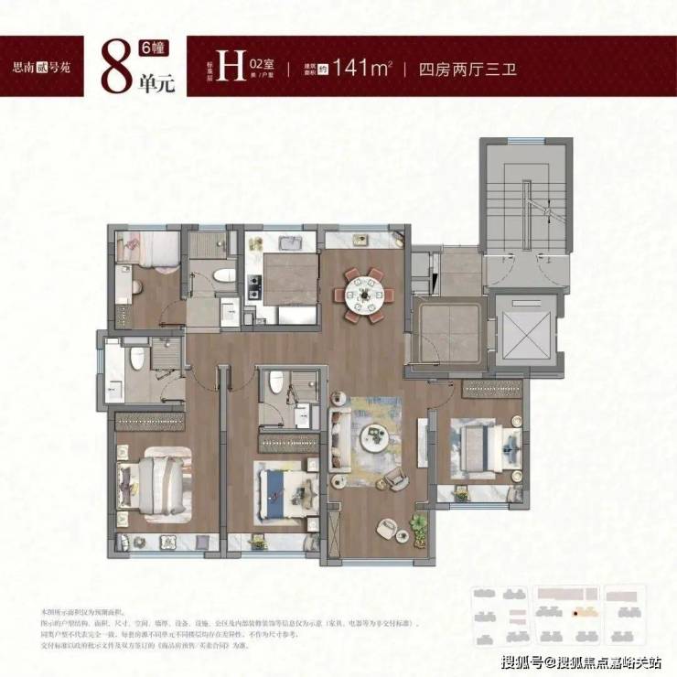 约188㎡四房:作为项目的 “旗舰户型”,188㎡四房三卫采用十字中轴动线,三卧朝南 + 双套房设计,满足多代家庭对隐私与阳光的双重需求。