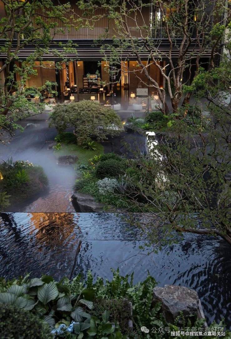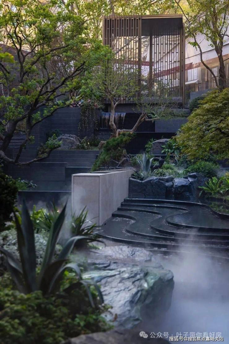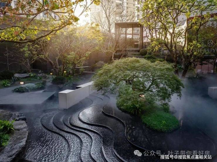 依新规在小区园林造景中,先下挖7米再与1层架空层的高低差做出约14米高差,以突破性的立体营造手法,将山川、溪谷、林泉的意象层层织就。将近2000平方实景下沉式庭院,在家实现可游、可赏、可居的立体山水,东方美学与居住空间完美结合,实现心由境转。