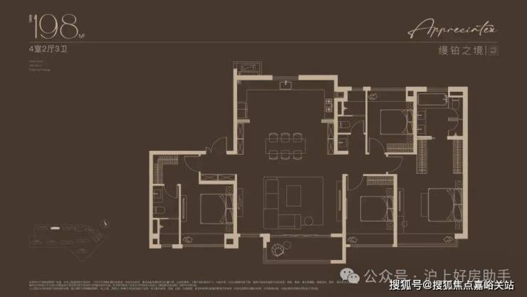 建面约198㎡4房户型,嘉定“收藏级”传世大宅!塔尖人士的挚爱之选!2梯2户的设计,子母双开门礼序入户,私密尊崇门厅,彰显尊崇生活仪式感。南山璞缦售楼处电话:400-8894-986🥇🥇🥇