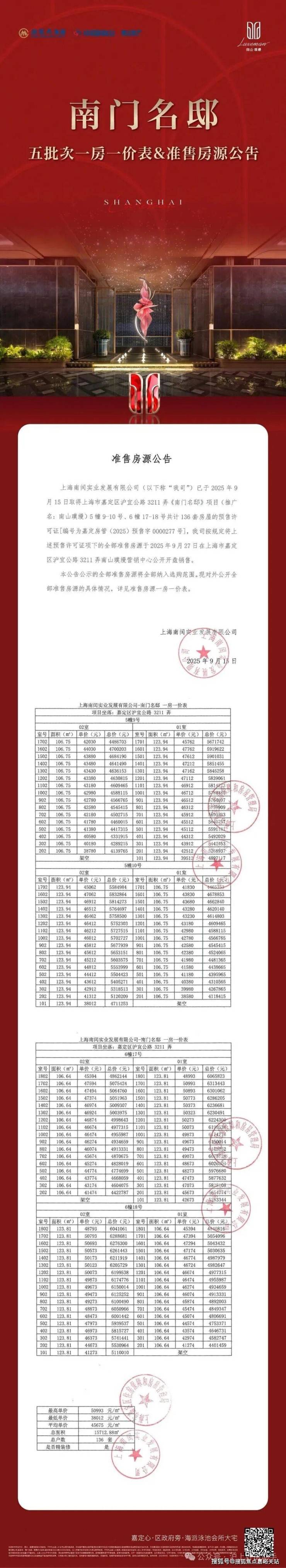 最新消息:南山璞缦项目五期加推105-123㎡3房户型,共136套房源,过会均价 均价45675元/㎡;另前期少量105-198㎡3-4房在售,总价365万起,可直接认购!作为嘉定新城封面豪宅产品,项目备受购房者的关注!