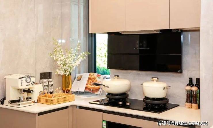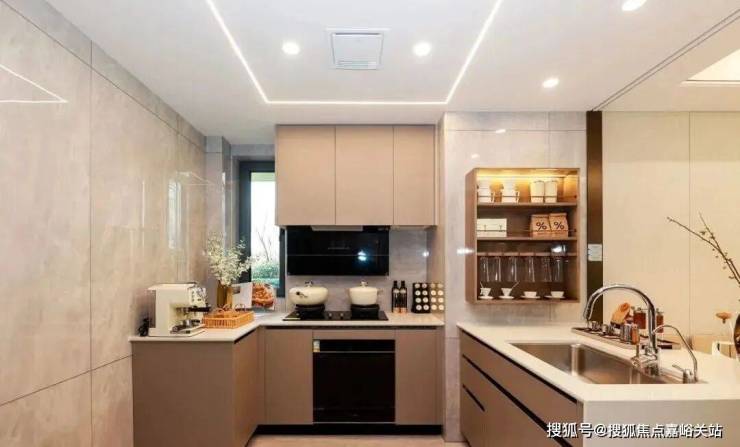 半开放式厨房,打破了传统的全封闭设计,与餐厅无界相通,面朝客厅与阳台,形成S型流畅生活动线,也打破了居家生活的空间隔阂,无形之间,增强家人之间在日常时刻的交流与互动。