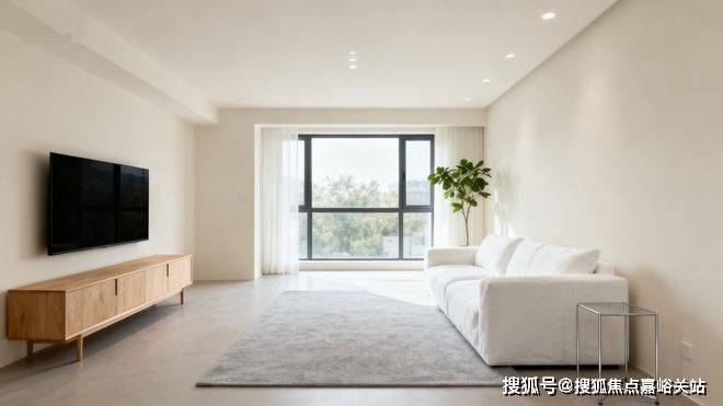 清爽感扑面而来:视线所及,不再有杂乱的遮挡,客厅显得尤为整洁、利落。